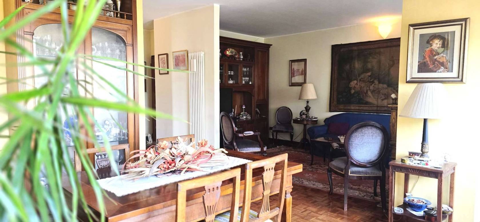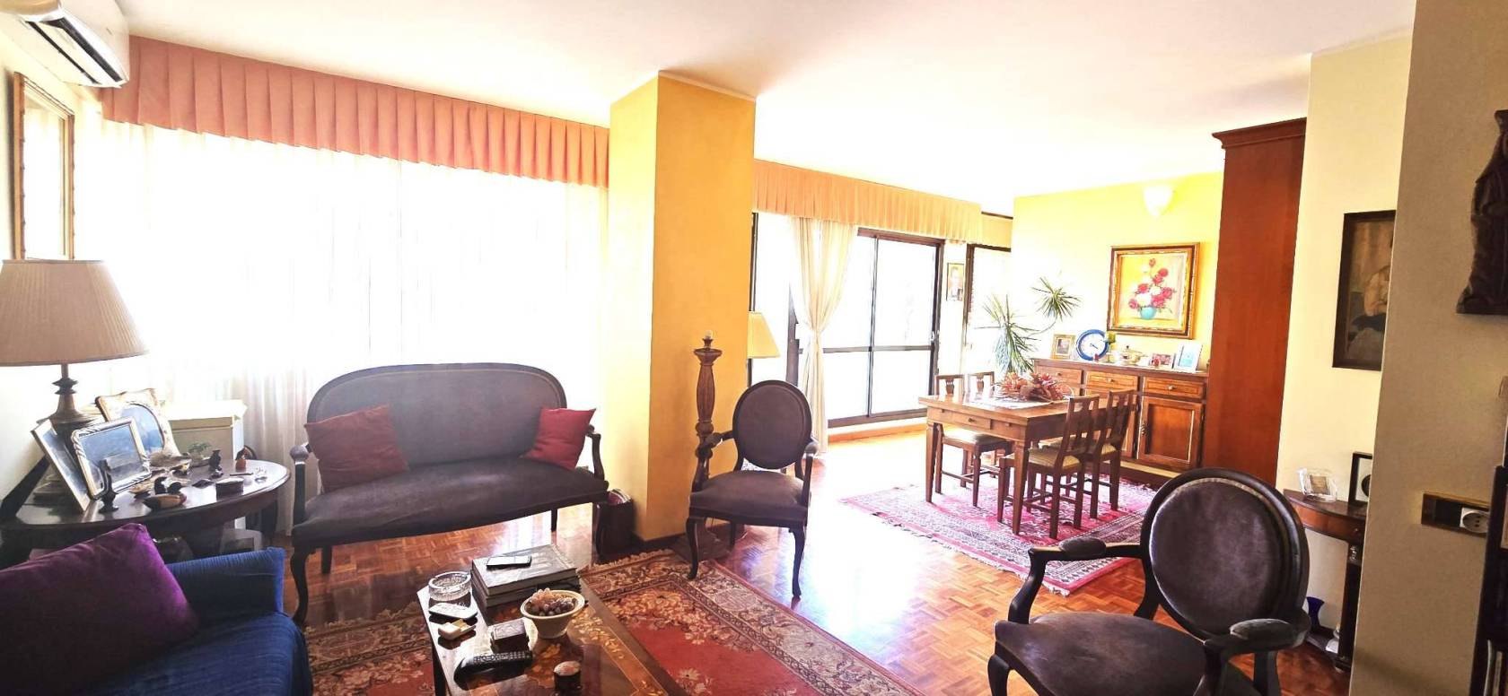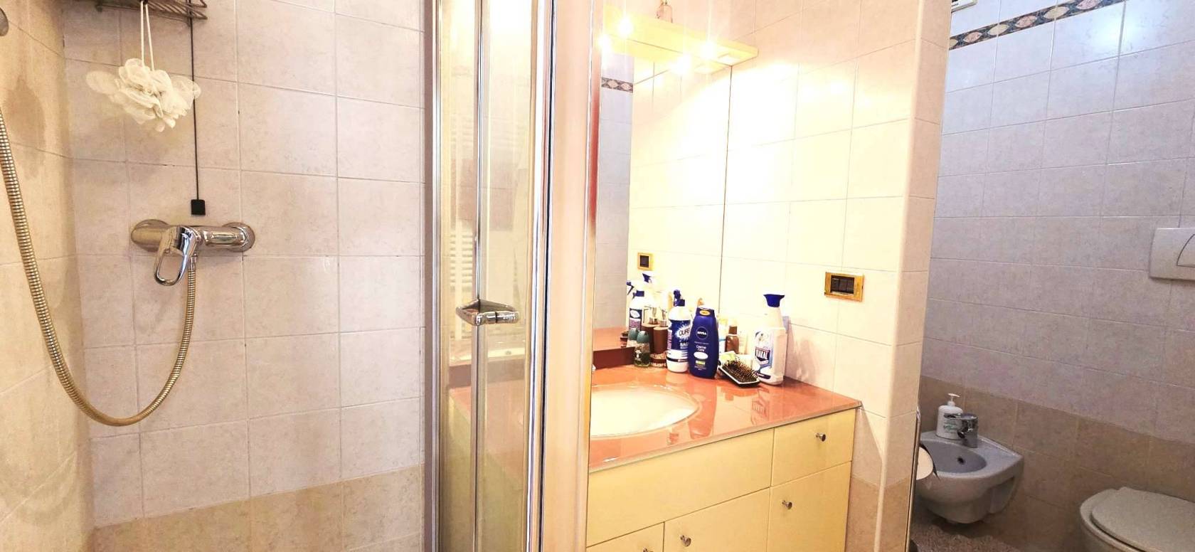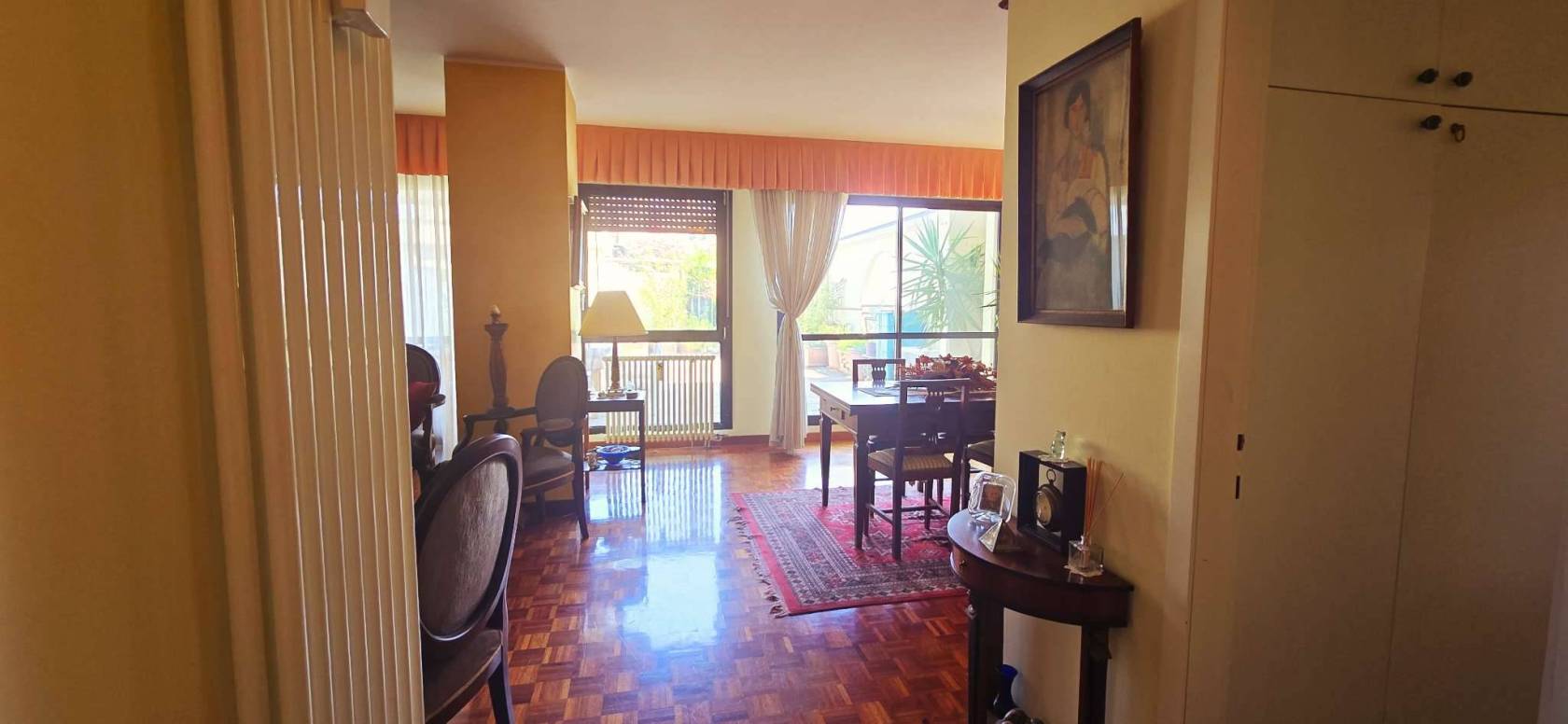 La cucina è separata e abitabile. La zona notte si compone di due camere matrimoniali, due bagni e un ripostiglio. Grazie alla distribuzione interna è possibile ricavare agevolmente una terza camera.